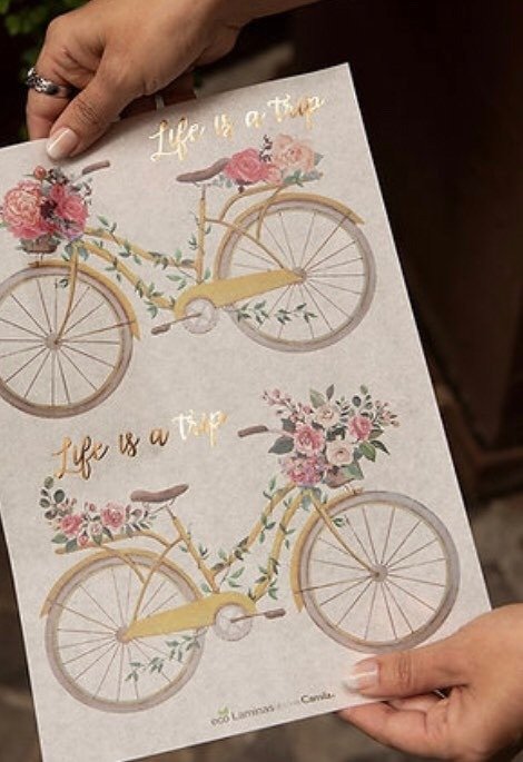 Eco lámina impresa en Papel Manteca Ultra fino con detalles en Hot Stamping (foil) dorado