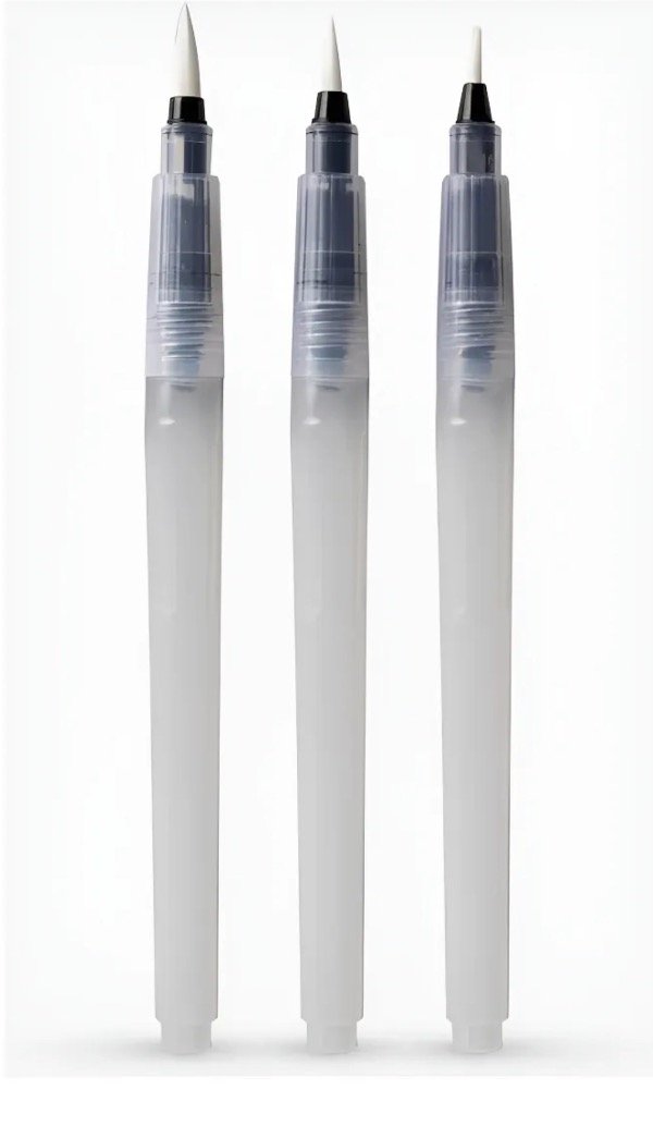 PINCELES CON DEPÓSITO DE AGUA. Apto para pintura, témpera, acuarelas, caligrafía. Abra el pincel y cargue el depósito de agua.